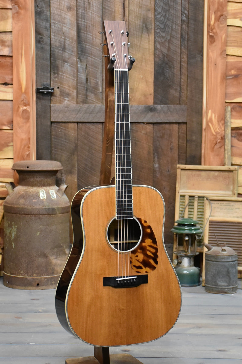 A brand new guitar which sounds remarkably like an old Martin!!! Thanks to the advanced aging techniques used in the production of Eastmans Thermo-Cured series. This one also displays many classic features known of the old Martin that Tony Rice got from Clarence White!