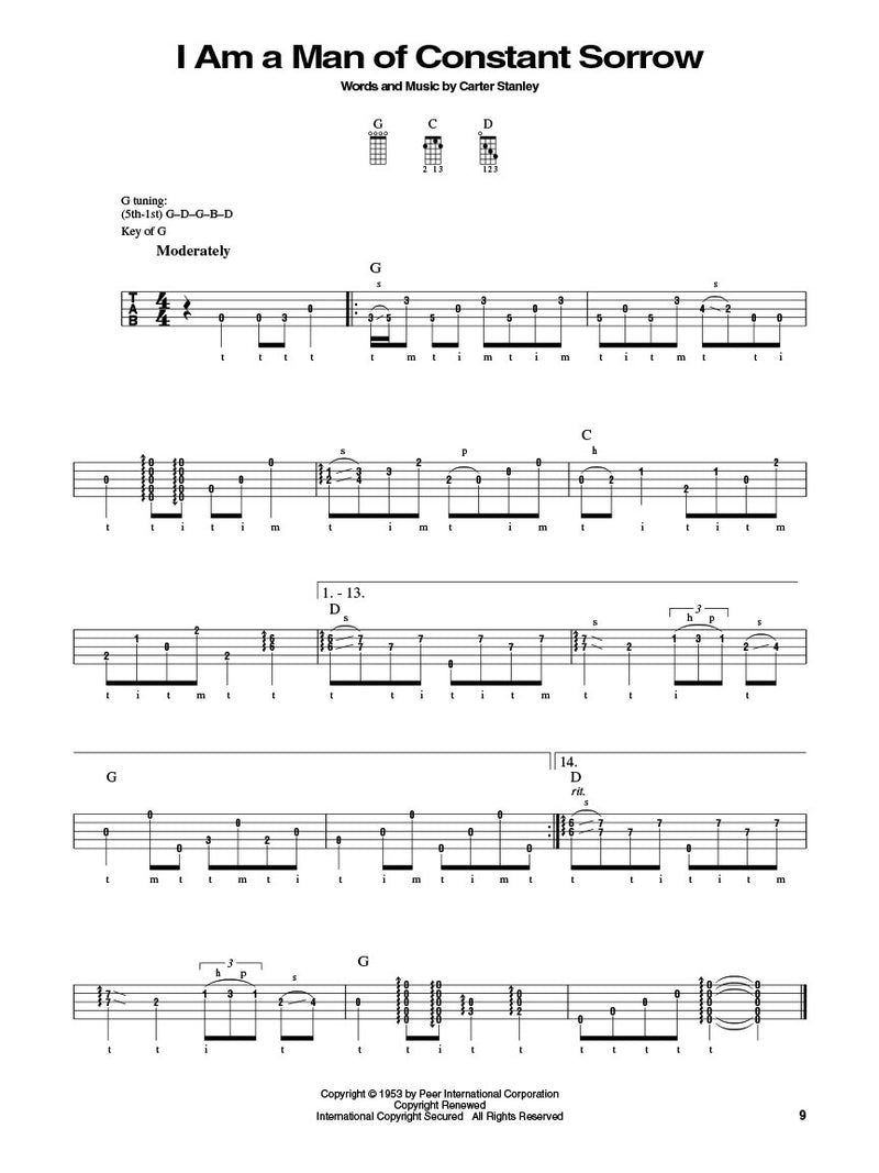 This stellar collection contains banjo tab arrangements of 12 bluegrass/folk songs from this Grammy-winning Album of the Year. Includes: Angel Band · The Big Rock Candy Mountain · Didn't Leave Nobody but the Baby · Down to the River to Pray · I Am a Man of Constant Sorrow · I Am Weary (Let Me Rest) · I'll Fly Away · In the Highways (I'll Be Somewhere Working for My Lord) · In the Jailhouse Now · Keep on the Sunny Side · and You Are My Sunshine, plus lyrics and a banjo notation legend.